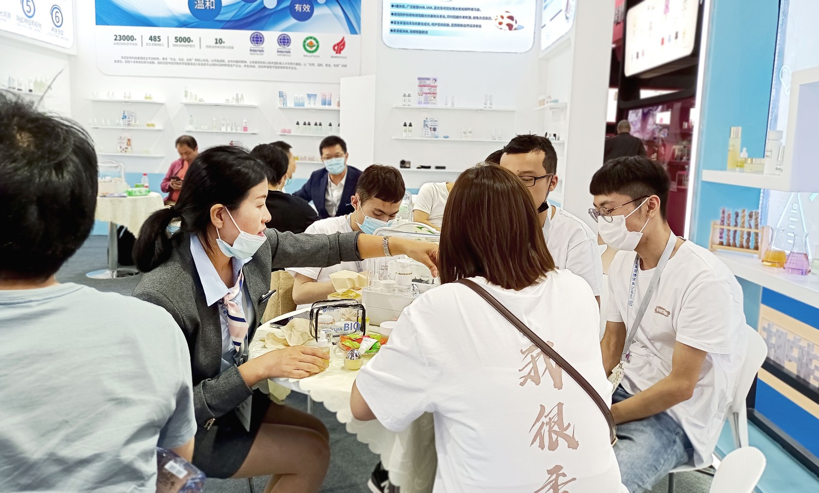 展廳內(nèi)容豐富的産品廣告吸引了衆多(duō)觀衆的目光,紛紛駐足觀看,天源生(shēng)物的工作(zuò)人(rén)員對其疑問進行(xíng)了詳細解答(dá),并指引大(dà)家(jiā)進行(xíng)産品試用,通(tōng)過親身體(tǐ)驗加深對産品的了解。